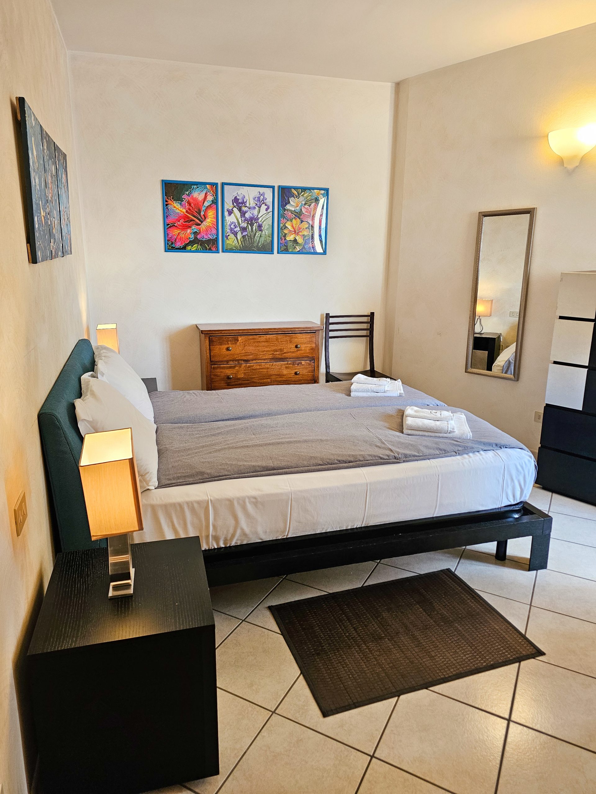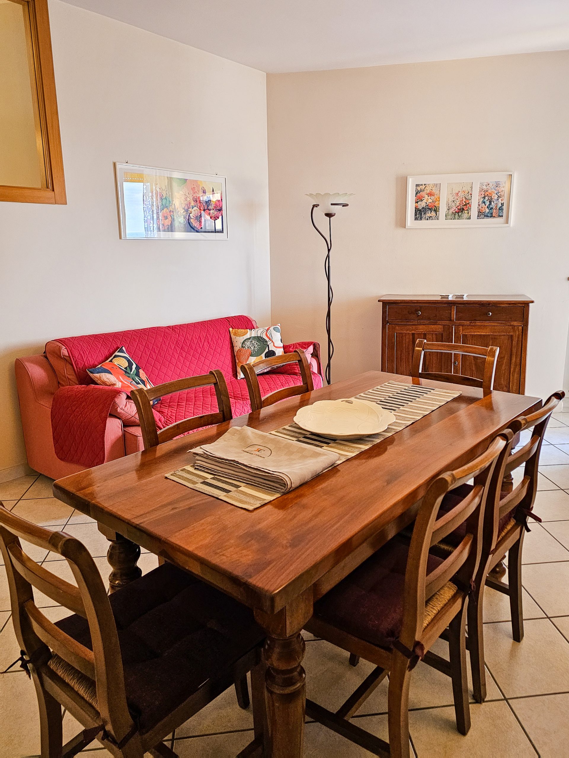 65 m², auf dem zweiten Stock mit Blick auf den See. Es verfügt über Wohnbereich mit Balkon, Küche und Schlafsofa für zwei Personen, Doppelzimmer mit Balkon, Bad.